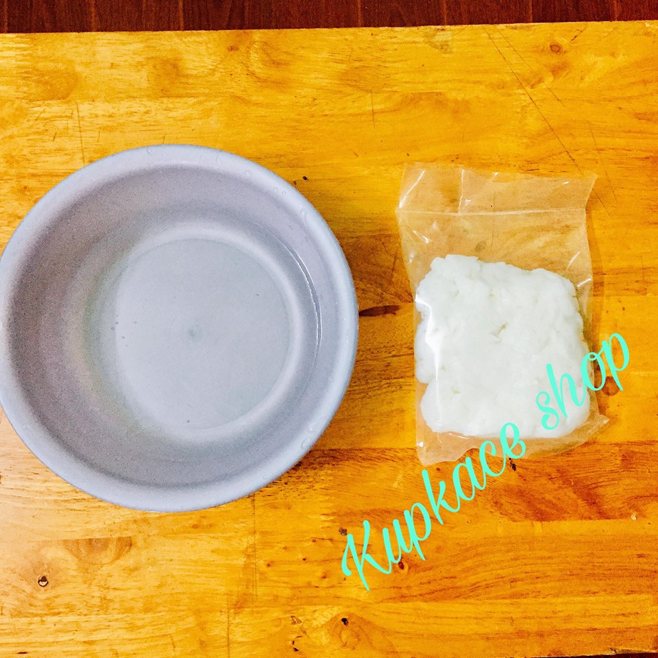 - Quá trình này làm ít nhất 4 lần nhằm chắc chắn đã loại bỏ mùi chua nồng vốn có của thạch dừa khô. ở đây mình làm 6 lần. Hình sau khi bóp